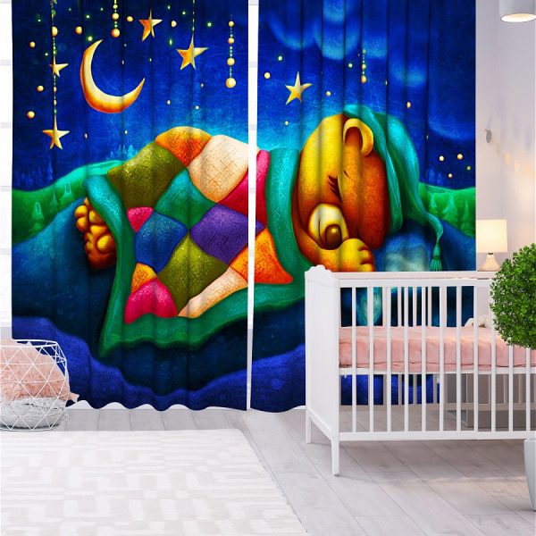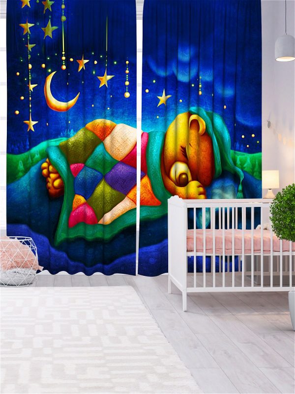 Описание: Два полотна по 145х265 см со шторной лентой , крючки для крепления 40 шт в комплекте.Идеально подойдут в детскую комнату. Материал: оксфорд .
